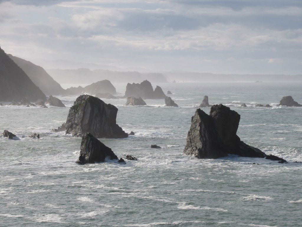 Crossed into Spain under grey skies. Everything smells of eucalyptus and rain. Galicia is green and haunted — cliffs, fog, sudden churches in the mist.