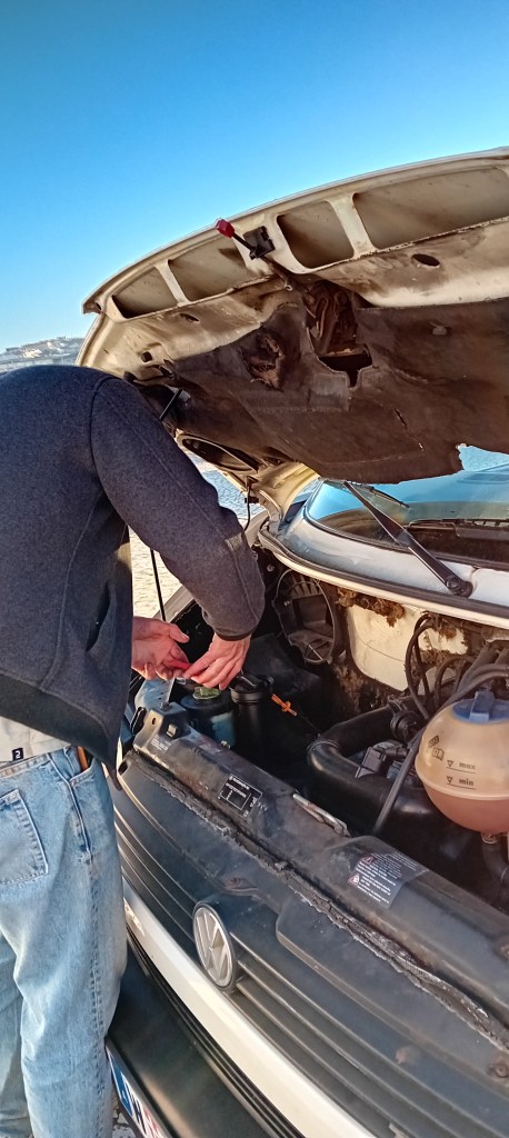 I sit on the roadside near Viana do Castelo, heat rippling off the asphalt. A trucker stops, helps me push the T4 onto the verge. He calls a local mechanic. The diagnosis: blown head gasket.